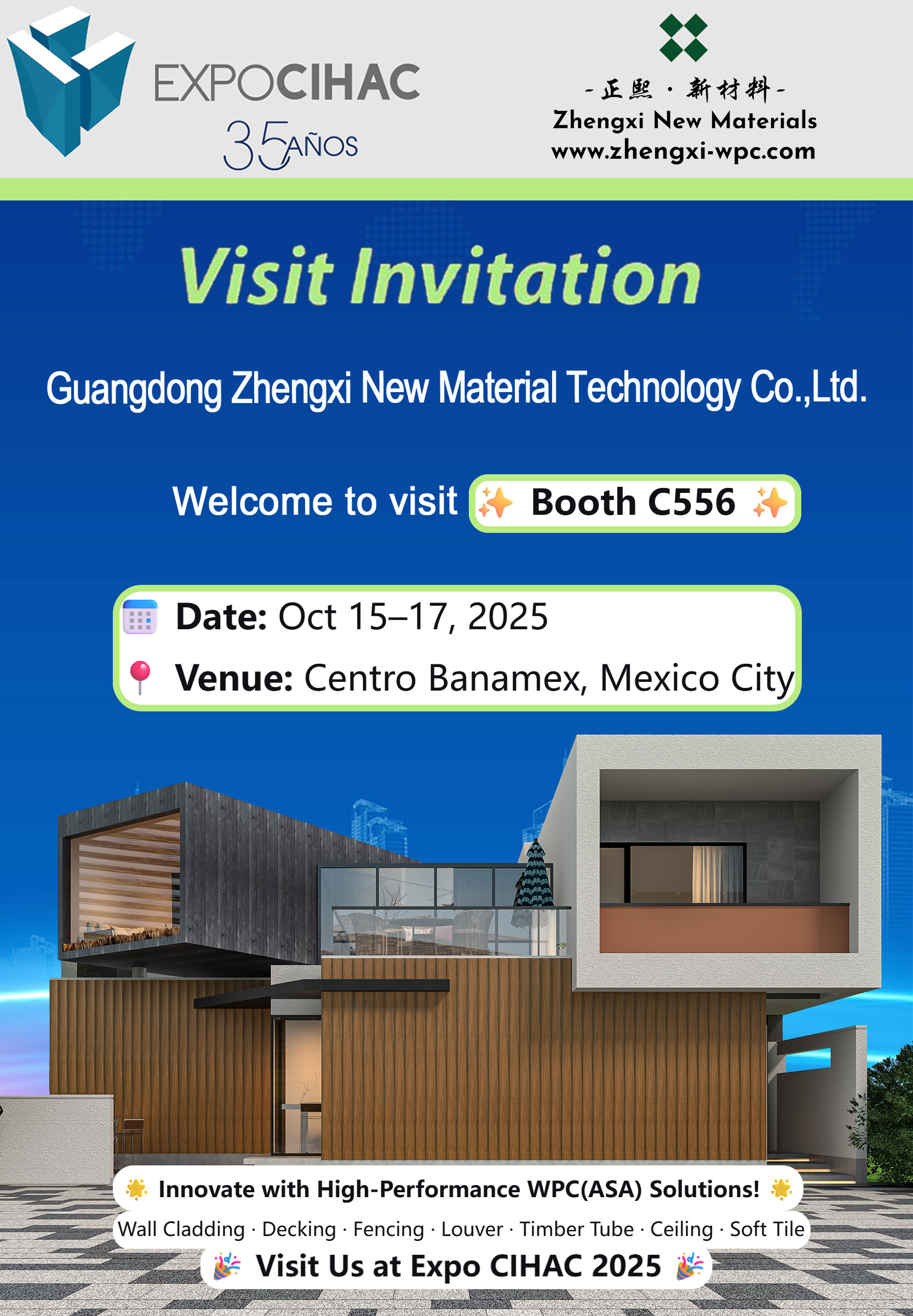 #ExpoCIHAC2025 #WPC #ASAMaterial #BuildingMaterials #ConstructionMexico #SustainableBuilding #Decking #WallCladding #Architecture #Innovation #ZhengxiNewMaterials